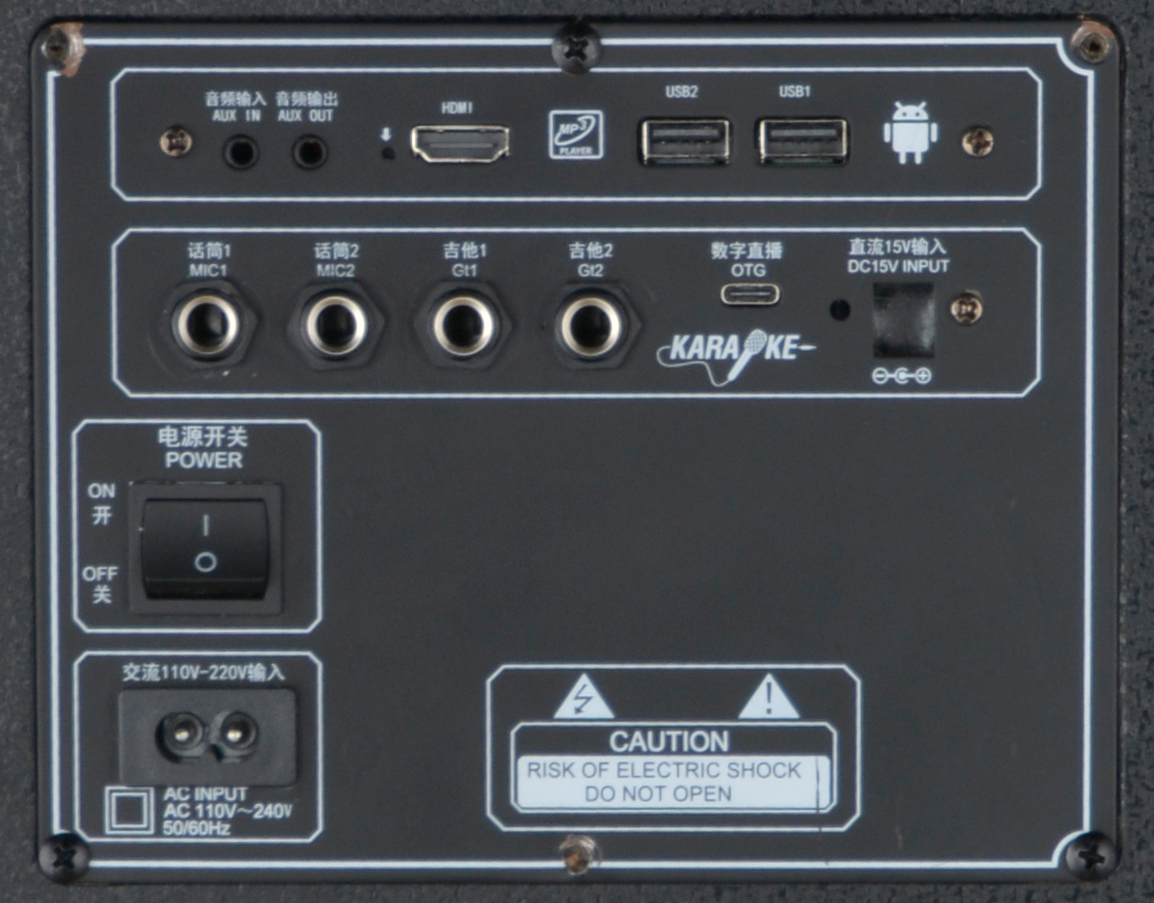 3、Functions : | Cortex-A53,USB,TF, Bluetooth 5.2(share datas),Remote control,1 Mic input,DSP,HDMI,Mircast,Screen-touching,2.4G/5G Wifi,Android10.0, DDR 2G+EMMC 32G,Built-in 12.1-inch display, |